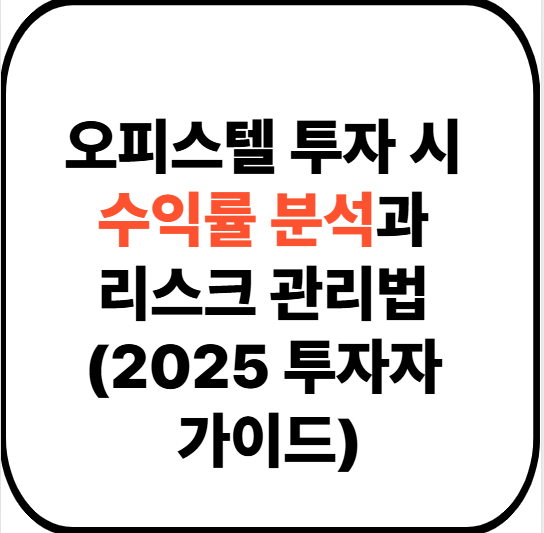 오피스텔 투자는 소액으로 시작할 수 있고, 임대수익과 시세 차익을 동시에 노릴 수 있는 매력적인 상품입니다. 그러나 철저한 수익률 분석과 리스크 관리를 기반으로 한 전략적 접근이 필요합니다. 2025년 현재의 시장 상황과 정책을 충분히 고려하여, 안정적인 투자와 자산 증식을 이루시길 바랍니다.